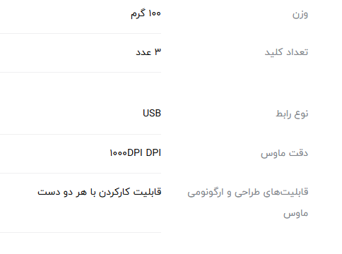 ویژگی های محصول: